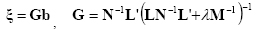 where M, N are the matrices associated to the metrics of the data and of the source space, respectively, λ is the regularization parameter and || z ||M represents the M-norm of the vector z. The solution of Eq. (4) is given by the inverse operator G as follows: