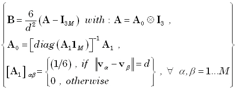 This is because the inverse matrix, i.e. B-1 , implements a discrete spatial smoothing operator. For a solution space given by a regular cubic 3D grid, with minimum inter-grid-point distance "d", the Laplacian operator used in practice is defined as:
