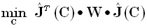 Note that the minimization is with respect to J, for some given C, where C is a 3·1 vector of unknown coefficients, expressing the contribution of