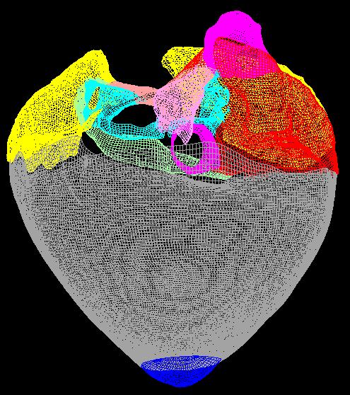 mesh for the simulation of atrial mechanical and electrical function. A