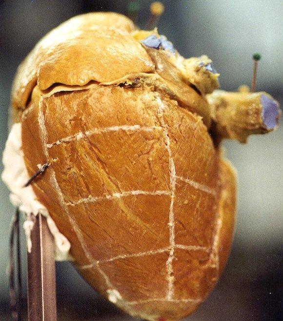 The posterior and anterior surfaces of the pig heart and human hearts are