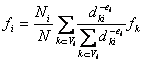 is the distance from the k-th neighbor to the target point i. The