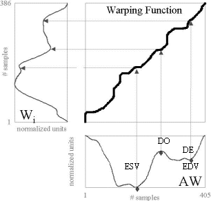 time warping approach was applied to the left ventricular (LV) volume
