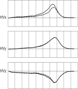 Figure 1. AP shortening in antero-septal LV region projected into heart vector orthogonal components HVx, HVy, HVz ((left, full line is the reference), surface QRST integral maps (middle, reference map in the top) and ARI maps (right, reference map in the top). 4. Discussion and Conclusions Careful adjustment of AP duration and other AP characteristics was necessary to obtain realistic simulated potentials. Limitation of the model is the use of isotropic myocardium. This may cause inaccuracy of simulated potentials that should be considered when interpreting the results. The results indicate that limited information about relatively small AP changes and their localization can be obtained from the heart vector or from surface VCG. Multi-lead methods perform better. Repolarization changes were clearly visible in surface ARI maps but this method does not guarantee their correct localization. The most reliable identification and localization of regions with changed repolarization was obtained from body surface integral maps. Because of the limitations of the model, validity of the obtained results has to be verified on real data. Moreover, in real situations, changes of surface potentials caused by locally changed repolarization can be masked by other physiological fluctuations and noise in measured data. Acknowledgements This work was supported by grants 2/1135/23 and 2/3203/23 from the VEGA grant agency. References Szathmáry V, Ruttkay-Nedecký I.: Effects of different sources of ventricular repolarization heterogeneity on the resultant cardiac vectors. A model study. In: Gy. Surján, R. Engelbrecht, P. McNair (eds.) Health Data in the Information Society. Proceedings of MIE2002, IOS Press, Amsterdam, 2002, 88-92. Yan GX., Shimizu W, Antzelevich Ch. Characteristics and distribution of M cells in anterially perfused canine left ventricular wedge preparations. Circulation, 98, 1921-1927, 1998. Tyšler M, Turzová M, Švehlíková J. Repolarization Changes Displayed in Surface ARI Maps. A Simulation Study. International Journal of Bioelectromagnetism, 4(2), 99-100, 2002.