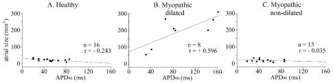 curve in healthy atria and in non-dilated myopathic atria. Our results suggest