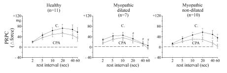 as well as post-rest potentiation of contraction (PRPC) after different rest
