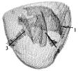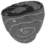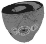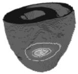 Figure 2. Visualizations of mouse heart activation sequence: (a) isochrone contours (measured in milliseconds) of the activation wavefront; banded-shading and isopotential contour visualization of the transmembrane (b) and extracellular (c) potentials at 6.5 ms post-stimulus. References BioPSE: Problem Solving Environment for modeling, simulation, and visualization of bioelectric fields. Scientific Computing and Imaging Institute (SCI), http://software.sci.utah.edu/biopse.html, 2002. Hsu EW, Muzikant AL, Matulevicius SA, Penland RC, Henriquez CS.: Magnetic resonance myocardial fiber-orientation mapping with direct histological correlation. Am J Physiol Heart Circ Physiol 274: H1627–34, 1998. Johnson C, Parker S, Weinstein D, Heffernan S: Component-based, problem-solving environments for large-scale scientific computing. Concurrency and Computation: Practice and Experience 14: 1337-1349, 2002. Pormann J: A Modular Simulation System for the Bidomain Equations (PhD). Durham, NC: Duke University, 1999.