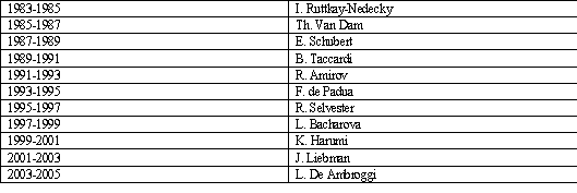 Congresses 1974-2003 Figure 4. Council members present in Budapest, 1981. Back (L-R): Taccardi, Macfarlane, Dolabjian, Arsenescu, Ruttkay-Nedecky, Abel, de Padua, Harumi. Front (L-R): Schubert, Wenger, Amirov, Rijlant, Antaloczy, Ueda, van Dam. Table 3. Presidents of the International Council on Electrocardiology