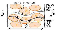Figure 1. Tissue under test with the current flow paths through the cell structure (a), and frequency spectrum of the dielectric permittivity ε and corresponding dependance of capacitive reactance XC (b). 2. Material and Methods 2.1. Some Target Applications of Electrical Impedance Measurement (EIM) Among the relatively established applications of EIM are body composition analysis [Lukaski, 1987; Cornish, 1993; Thomas, 1998], Electrical Impedance Tomography [Metherall at al., 1996; Holder et al., 1999; Smallwood at al., 1999; Patterson et al., 2001], and alterations in skin and oral mucosa [Nicander et al., 1996; Rantanen et al., 2002; Nicander et al., 2003; Åberg et al., 2003].