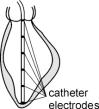 Figure 2. Electrical bioimpedance cardiography: noninvasive plethysmography (a), multielectrode invasive estimation of the ventricular volume (b), intracardiac impedance based pacing control (c and d). Cardiac applications have been focused at estimating cardiac output, using non-invasive [Kubicek et al., 1966], see Fig.2a, or invasive [Baan et al., 1981] technique (Fig.2b). Further developments and clarifications have been contributed by several researchers [Baura, 2002], e.g. by taking into use the ECG electrodes for concurrent ICG measurement [Kauppinen et al., 1999], and see ECG/ICG electrodes in Fig.2a. The invasive ICG was taken into use in 1980s [Baan et al., 1981], see Fig.2b, and has been applied in cardiac pacemakers [Salo, 2002; Webster, 1995]. The ICG application has not been a story of permanent success. The noninvasive ICG was formally approved for full Medicare coverage in the USA only in September 1998 [Baura, 2002]. Other recent intracardiac measurements include using very thin catheter or pacemaker electrodes [Ericsson et al., 2001; Söderqvist et al., 2001; Järverud et al., 2002], and monitoring of myocardium ischemia [Gersing, 1998; Schaefer et al., 2002] or myocardium energy balance [Kink et al., 2000], see Fig.2c and 2d. 2.2. Bioimpedance Measurement Nowadays bioimpedance applications of multielectrode systems (Fig.2) require multiplexed measurements at several frequencies from the audio range up to tens of MHz (multipoint impedance spectroscopy), [Osypka and Gersing, 1994; Kauppinen et al., 1999; Min et al, 1999, 2002], see Fig.3. A distortion free and near to real-time extraction of impedance variations, or two-phase (0º and 90º) synchronous demodulation of the real (Re) and imaginary (Im) parts of biomodulation (Fig.3) of cardiac impedance due to heart beating and respiration (Fig.2d), is the aim of measurement [Grimnes and Martinsen, 2000; Min et al., 2000].