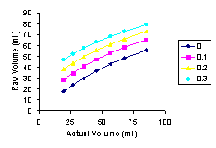 of volumes from 20 — 80 ml decreases from 11.2 ml to 0.4 ml for nonconductive