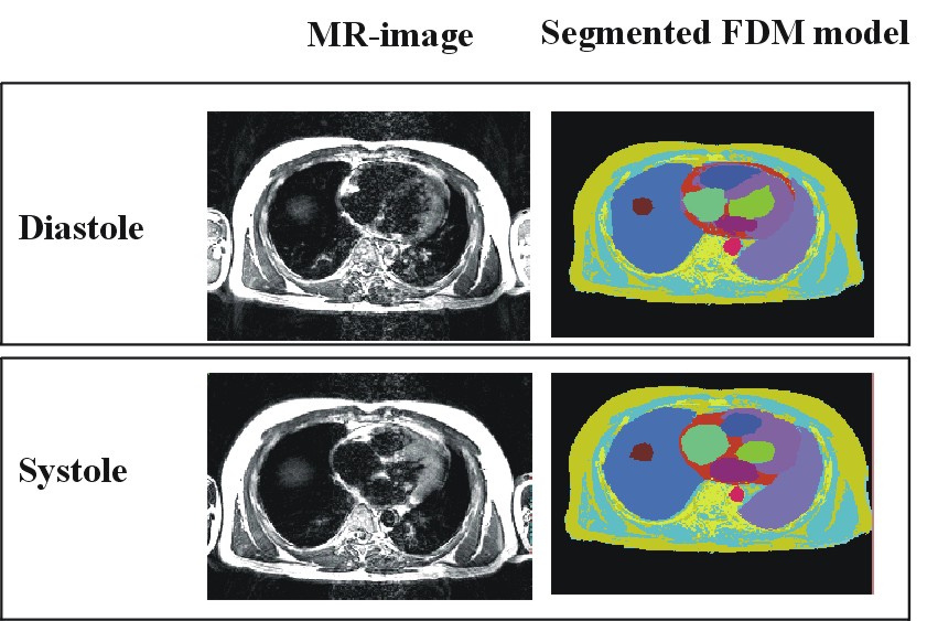 modelled inhomogeneitis include intracardiac blood masses, heart muscle,