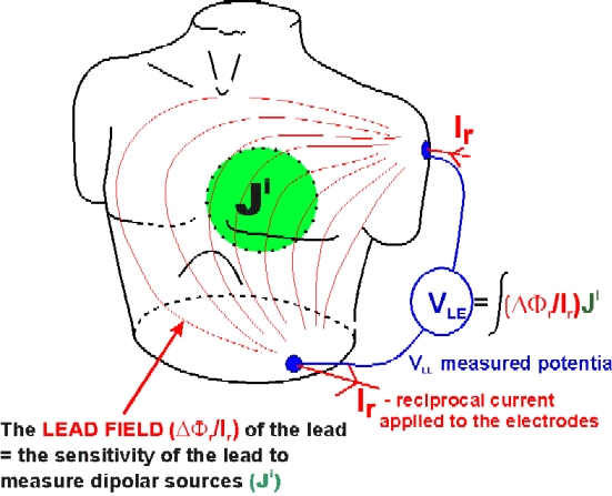 modeling the thorax as a volume conductor, e.g. the phase of the